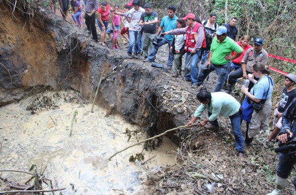 Listo el dictamen del cráter en Moloacán; descarta Protección Civil sea peligroso