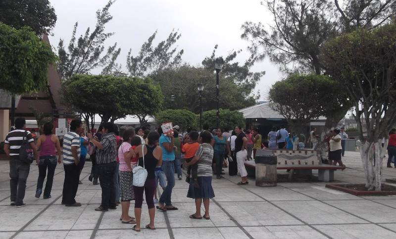 La protesta en el Parque Independencia fue por parte de colonos de Las Barrillas y el Manantial, debido al taponamiento de drenaje. La dirección de Desarrollo Urbano municipal les prometió atender este problema que aqueja a más de 300 familias.