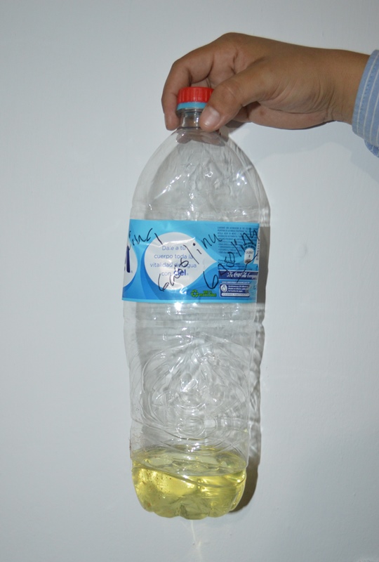 El color de la gasolina Magna que despacha Servifácil es amarillento cuando supuestamente debería ser color rojo, según una muestra recaudada por el taxista Erick Giovanni que la utilizó como prueba ante Profeco.