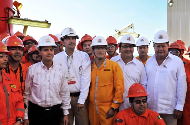 Cosoleacaque, Ver.- El gobernador Javier Duarte de Ochoa acompañó al Presidente Enrique Peña Nieto en su recorrido por la Plataforma Semisumergible Centenario, ubicada frente a las costas de Coatzacoalcos.