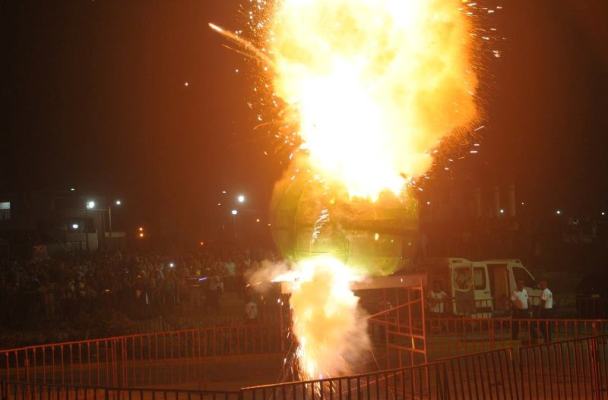 Un limón prendido en fuegos artificiales fue el ícono que se eligió para arrancar el Carnaval Coatza 2014.