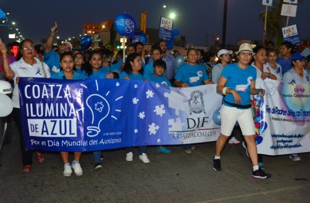 Coatzacoalcos, Ver.- Con una caminata en la que participaron más de cien personas ataviadas de color azul, el sistema DIF Municipal se suma a las acciones conmemorativas al Día mundial de concienciación sobre el autismo, que culminaron con la iluminación en color azul de la Pirámide del Malecón Costero y la liberación de globos azules.