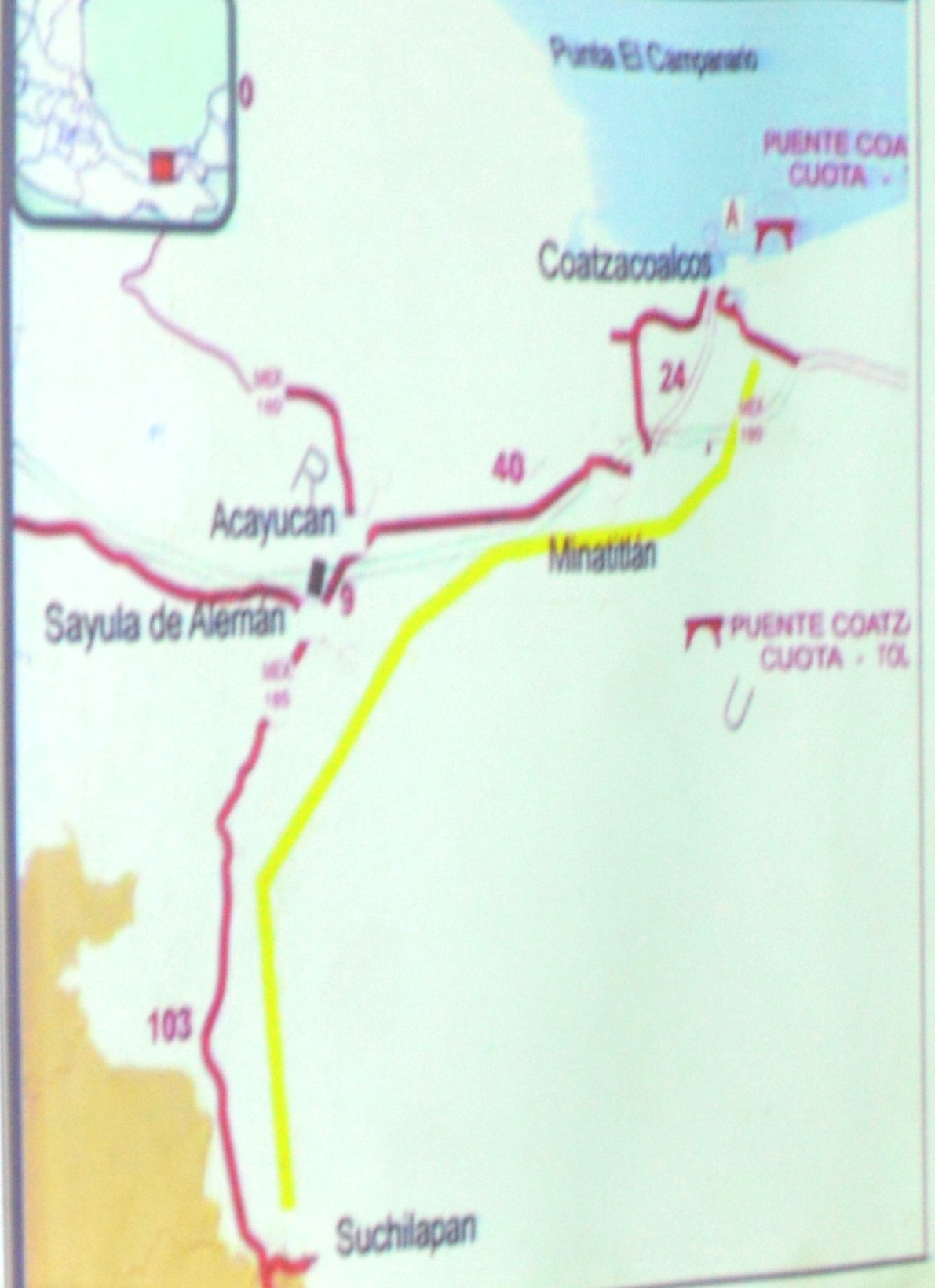 Otro de los proyectos de obras federales que se contemplan para el sur de Veracruz es la modernización de la carretera 180 que abarca los tramos Santiago Tuxtla-Catemaco-Cosoleacaque-Jaltipan-Acayucan- que tendrá un inversión de mil 500 millones de pesos.