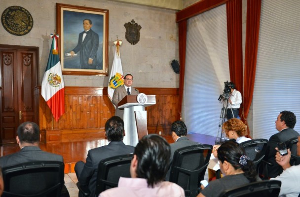 El Gobernador Javier Duarte, en su tradicional ya conferencia de los lunes.