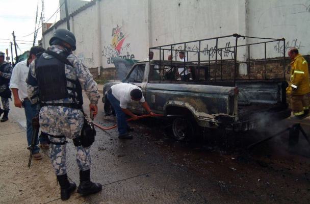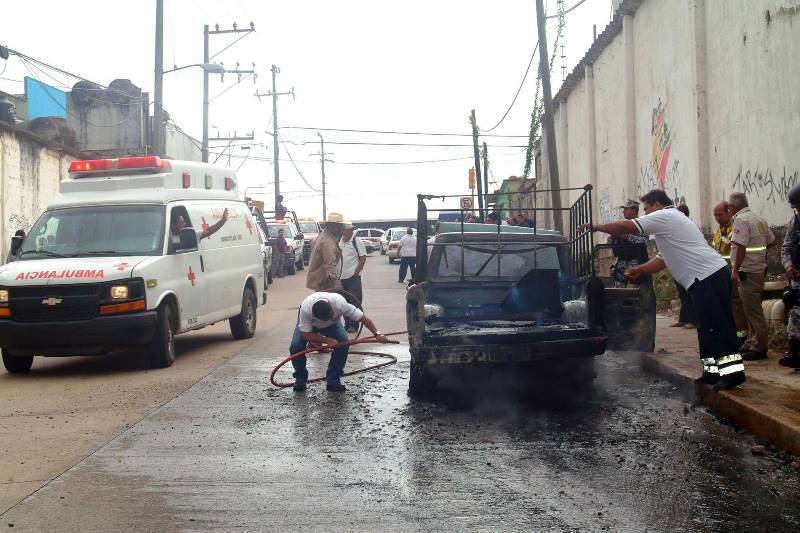 Los elementos de Protección Civil y del Mando Unico cerraron la calle, para evitar daños a la población mientras se consumía en fuego la camioneta.