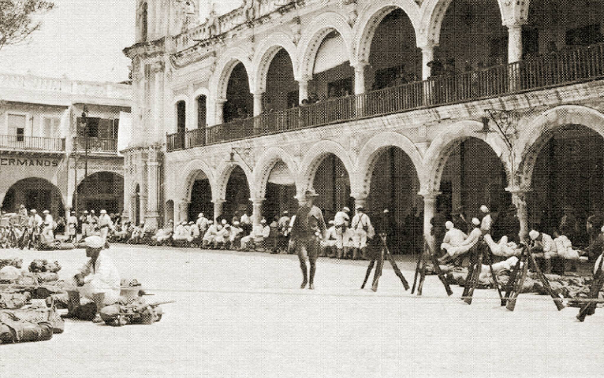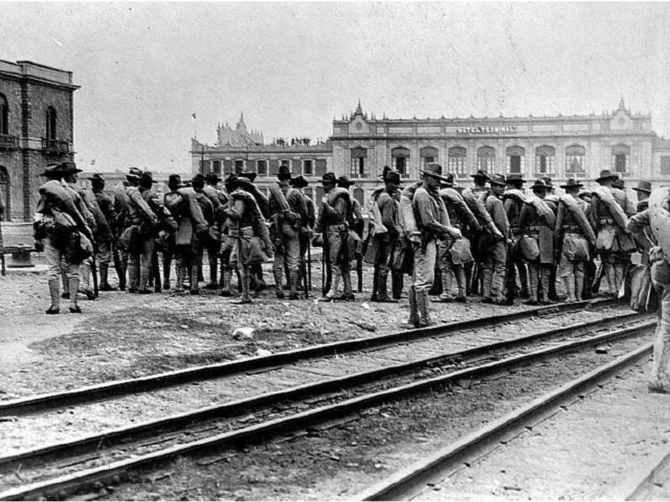 Marines durante el desembarco enfrente de la Estación Terminal y haciendo uso de los carros del ferrocarril nacional.
