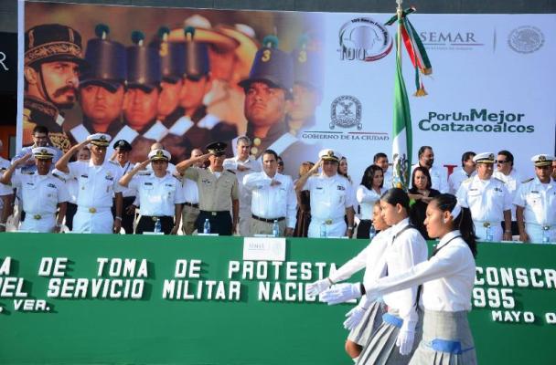 En esta ciudad, el Comandante, José Candelario Jaime Contreras López, acompañado de Caballero Rosiñol, rindió protesta a los 226 jóvenes que prestan su Servicio Militar Nacional y 9 mujeres voluntarias quienes cumplen sus deberes en el Ejército y la Marina.