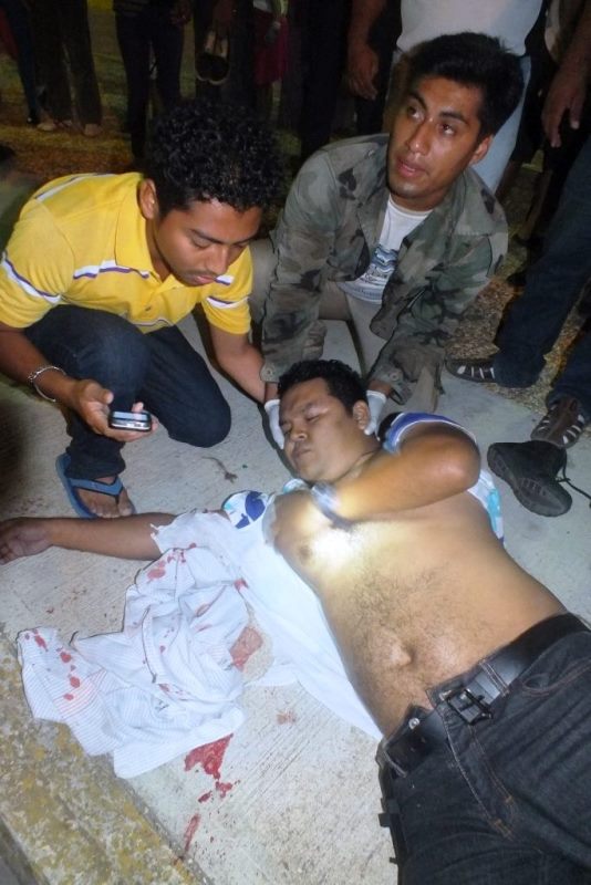 Después de los hechos hicieron acto de presencia elementos de la policía naval, que como siempre nada más tomaron fotos y datos de los hechos, mientras que al hospital Comunitario llegaron elementos del Ejército que se entrevistaron con uno de los jóvenes, quienes le dio pormenores de los hechos.