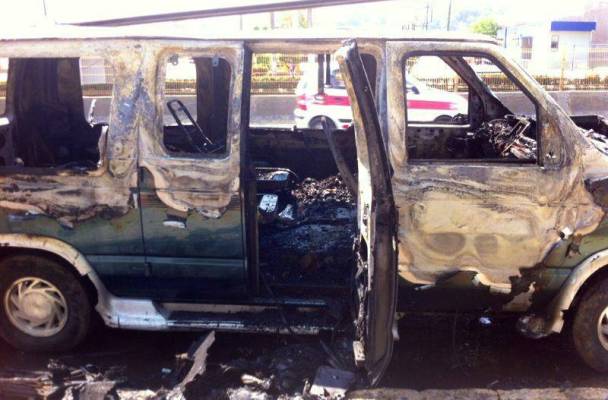 El accidente ocurrió a las 14:25 horas cuando la camioneta Ford tipo vagoneta color verde, año 1993 se encontraba estacionada en la vialidad antes mencionada, originándose las llamas que terminaran en calcinar por completo la unidad.