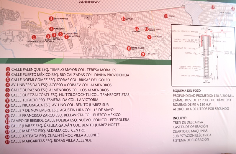 Con la inversión de 50 millones de pesos por parte del Gobierno del Estado, en esta obra se incluye un tren de descarga, caseta de operación, cuarto de máquinas, una subestación eléctrica y sistema de cloración.