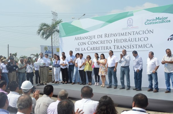 Coatzacoalcos, Ver.- Todos las vialidades que son accesos a Coatzacoalcos serán re-pavimentadas con concreto hidraúlico, prometió esta mañana el alcalde Joaquín Caballero durante el arranque de obra de pavimentación de la carretera Transísmica, desde el Puente Joroba hasta el Puente Calzadas.