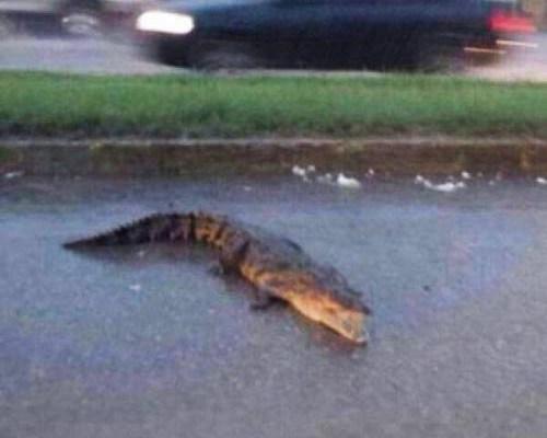 Sin embargo, cientos de usuarios de redes sociales filtraron fotografías del cocodrilo que salió del pantano tras las inundaciones.