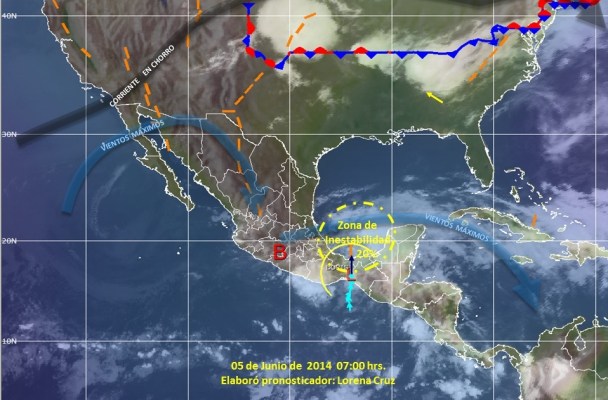 Apunto que la baja presión sigue como semi-estacionario con vientos máximos sostenidos de 35 kilómetros por hora y rachas de 45 kilómetros por hora.