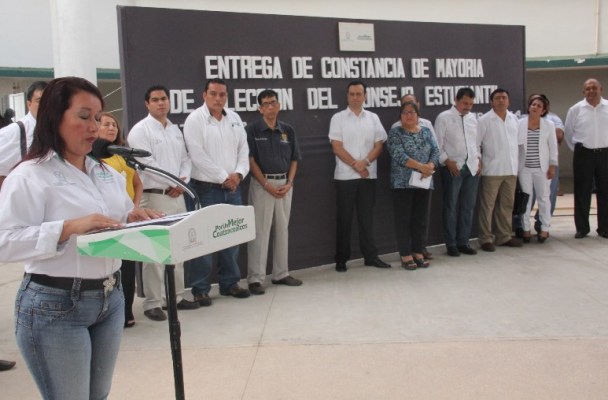 Coatzacoalcos. Este lunes, la regidora Segunda, Mirna García Ávalos, en representación del alcalde Joaquín Caballero Rosiñol, entregó la constancia de mayoría a María Fernanda Balcázar Rodríguez por la elección del Consejo Estudiantil en la escuela General Miguel Alemán González que organizó y llevó a cabo el Instituto Nacional Electoral en este centro educativo.