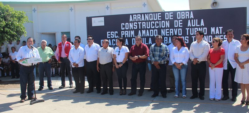 En la tarde, el presidente municipal, encabezó el banderazo de arranque de construcción de 2 aulas, en las escuelas: Primaria Amado Nervo y Secundaria General No 5, de las colonias las Gaviotas y Santa Isabel I respectivamente.