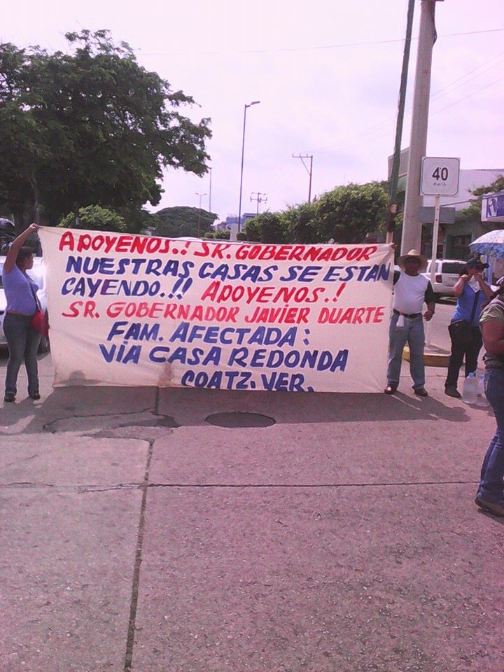 Vecinos de casa redonda exigen al gobierno les repare sus casas que salieron dañadas por la obra del Tunel Sumergido entre Coatzacoalcos y Villa Allende, tras amenazar que tomarán las calles de la ciudad si el Gobierno del Estado no les tramita su pago.