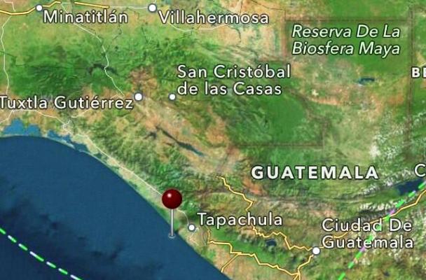 Mapa: Sismo en Chiapas – Guatemala, a más de 850km de la Ciudad de México. Se revisan posibles daños en el Suroeste.