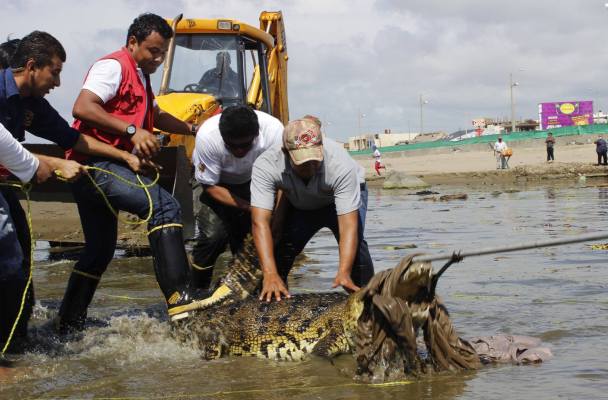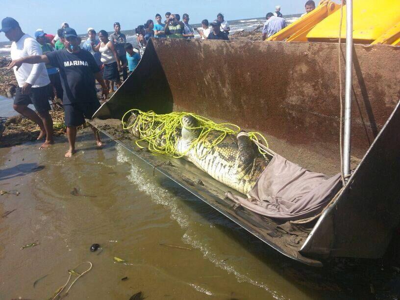 Tras varias reportes, diversas dependencias de auxilio de la ciudad se aproximaron al lugar para tratar de capturarlo, pero el cocodrilo se encontraba en una descarga residual, que va directamente a la playa, por lo que tuvieron la necesidad de utilizar maquinaria pesada para poder rescatar al cocodrilo en el lugar.
