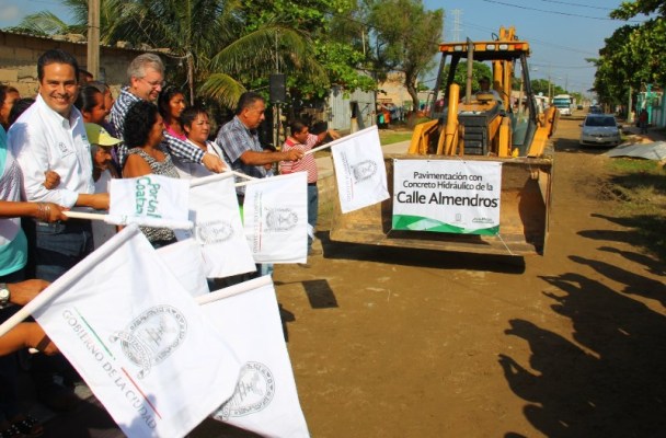 Coatzacoalcos.- El presidente municipal, Joaquín Caballero Rosiñol, arrancó la mañana de este domingo la pavimentación con concreto hidráulico de 670 metros lineales y 8 metros de ancho de la calle Almendros, entre Citlalli y Guayabas de la colonia Miguel Hidalgo.