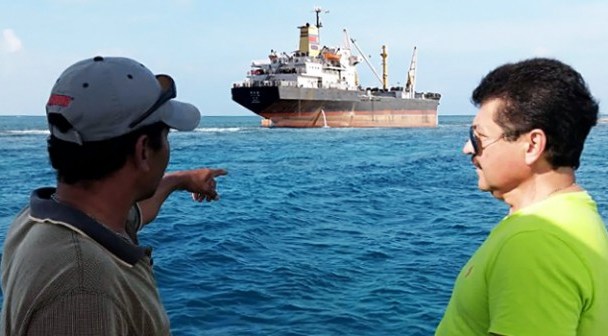 Verifican daños por encallamiento de buque coreano en costas de Tuxpan