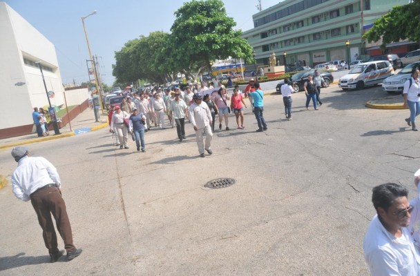 Alrededor de 100 petroleros participaron en la marcha de esta tarde. (Gabriel Gutiérrez)