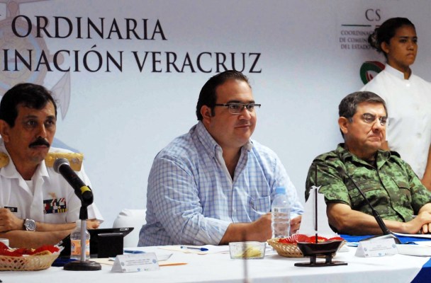 En reunión privada con el gobernador del estado para informar acerca de la seguridad en Coatzacoalcos (Foto Carlos Nino).
