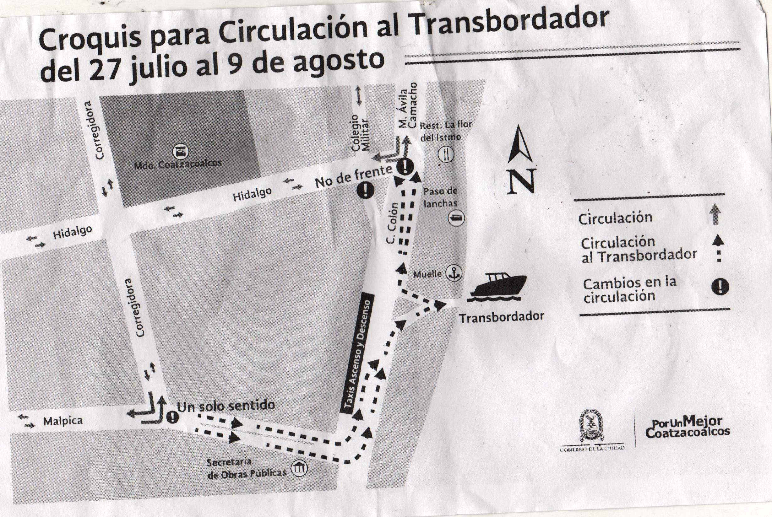 Lo anterior lo dio a conocer el Delegado de Tránsito en esta ciudad, Pedro Quiroz García e informó que dicho esfuerzo se llevará a cabo del 27 de julio al 9 de agosto, como respuesta al cierre del puente y para así mantener una vialidad fluida en las calles aledañas al transbordador que comunica a Coatzacoalcos con Villa Allende.