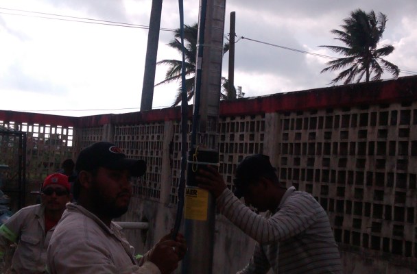 Varias cuadrillas de trabajadores se abocaron a realizar los trabajos del cambio de las bombas y los motores de los pozos antes citados, los cuales se habían quemado.