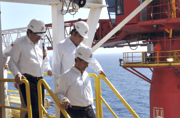 El Gobernador Javier Duarte y el presidente Enrique Peña Nieto recorren la plataforma petrolera Centenario ubicada en el Golfo de México en Veracruz.