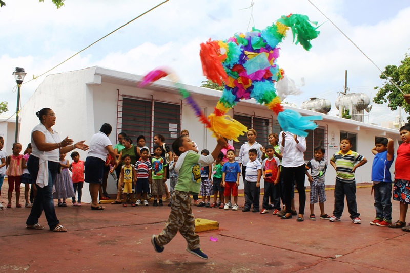Padres de familia junto a sus hijos rompieron piñatas y convivieron con personal de este organismo asistencial.