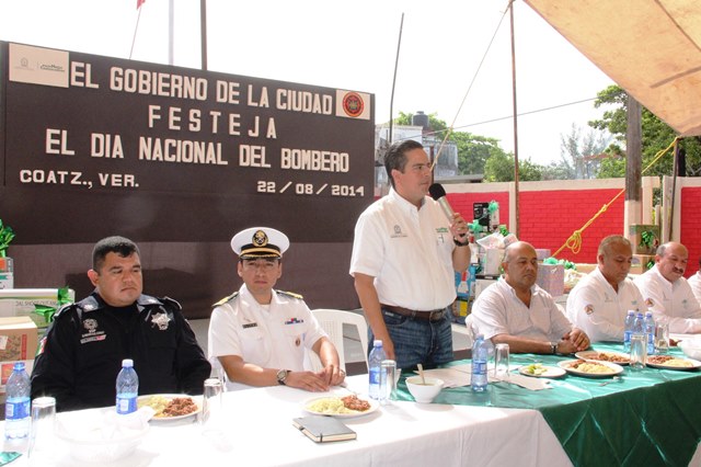Coatzacoalcos.- El Ayuntamiento de Coatzacoalcos celebró el 39 aniversario de la fundación del Heroico Cuerpo de Bomberos en esta ciudad y reconoció la valentía así como el coraje que demuestran al arriesgar sus vidas para salvar otras con el incremento de salario a los elementos de esta corporación a partir de septiembre.