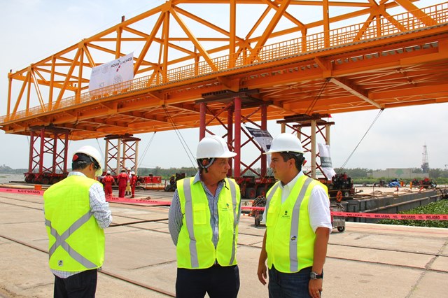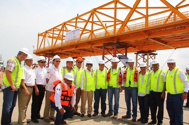 Coatzacoalcos.- El presidente municipal, Joaquín Caballero Rosiñol y el director del Centro de la Secretaría de Comunicaciones y Transportes (SCT) Veracruz, William David Knight Bonifacio, inspeccionaron ayer los trabajos que se realizan en la zona portuaria de la ciudad para el traslado y colocación de la trabe levadiza al puente Coatzacoalcos I.