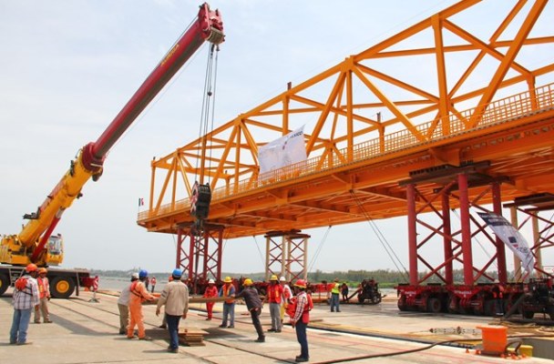 Constatan trabajos para la colocación de la trabe levadiza al puente Coatza I