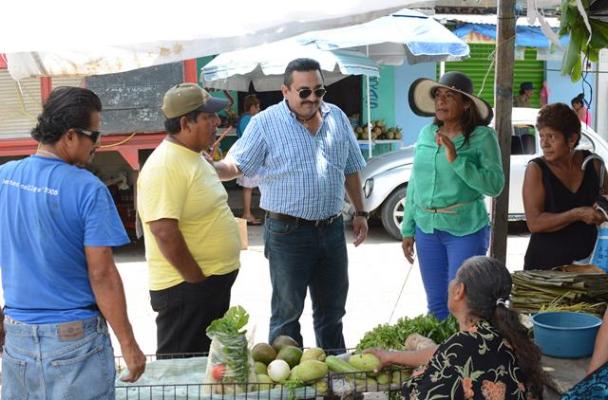 El regidor Décimo, Luis Enrique Rendón Martín, acompañado de la agente municipal, Keren Itzel Prot Vázquez; el presidente de la Cámara Nacional de Comercio, Esteban Enríquez España y la directora de Comercio, Marlinda Carrasquedo Santos, supervisaron las vialidades.