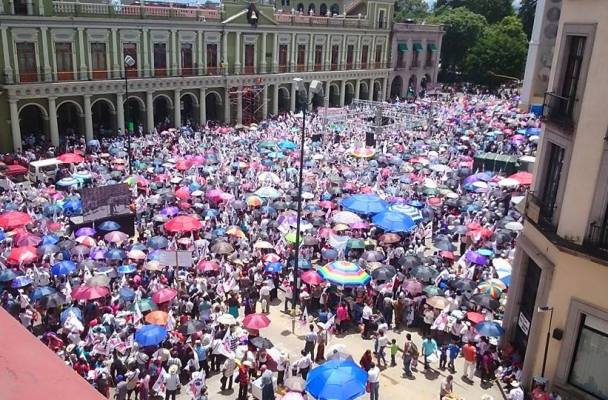 Xalapa.– Un multitudinario grupo de cardenistas de todo el estado se concentraron este martes en el centro histórico de Xalapa, como parte de su protesta en contra de los gasolinazos.
