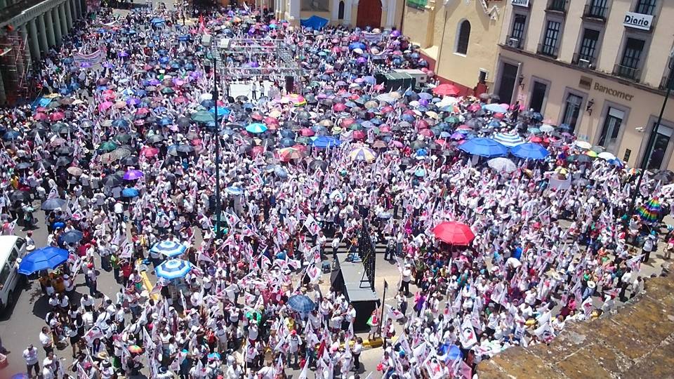 Miles de cardenistas se manifiestan afuera del Palacio de Gobierno.