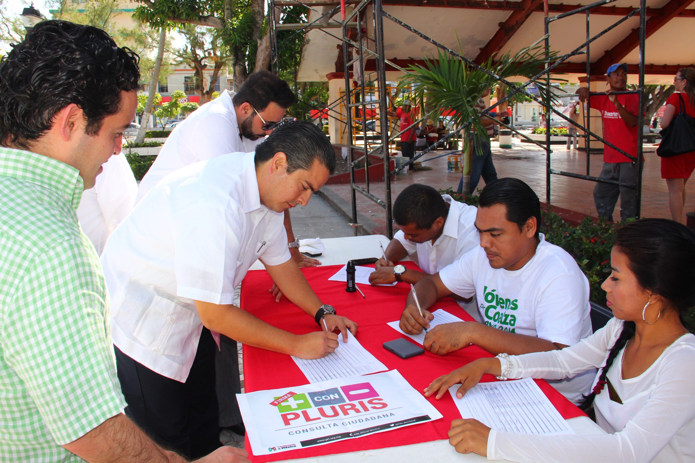 Coatzacoalcos, Ver.- El presidente municipal, Joaquín Caballero Rosiñol, suscribió este sábado en el Parque Independencia el formato para la obtención de firmas de la petición de Consulta Popular que pretende plantear al voto universal la pregunta sobre si debe reducirse el número de legisladores federales de representación proporcional –plurinominales.