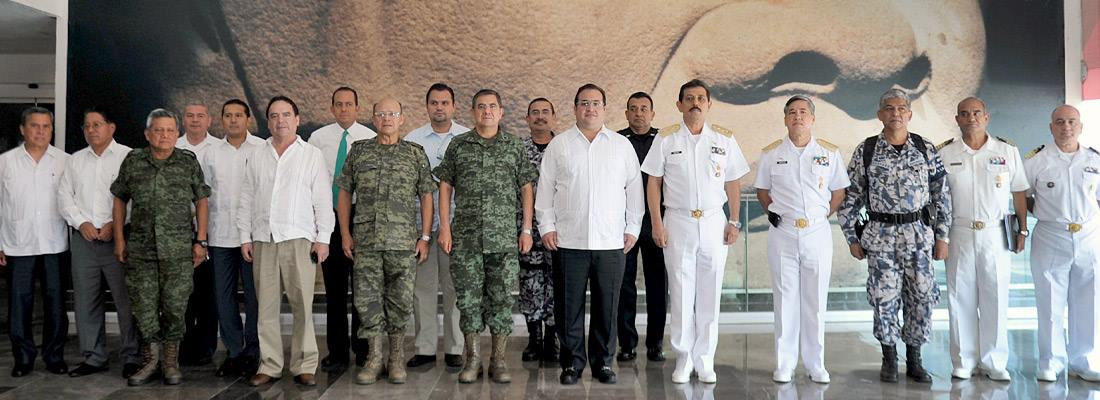 Javier Duarte dijo que la coordinación, con las secretarías de Marina-Armada de México (Semar) y de la Defensa Nacional (Sedena), es elemento fundamental para robustecer y fortalecer la seguridad pública en Veracruz.
