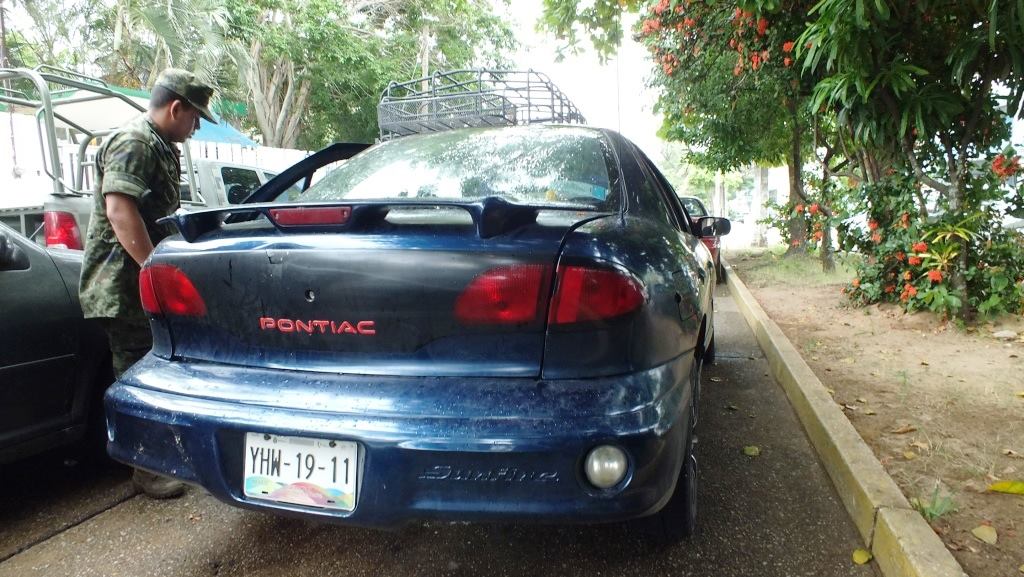 El pasado 5 de agosto, efectivos de la 29/a. Zona Militar en Coatzacoalcos, aseguraron a 4 personas que traían en su poder 20 mil dosis de droga y viajaban a bordo de un vehículo compacto marca Chevrolet, tipo Pontiac Sunfire GT, modelo 2001, color azul, placas YHW-1911.