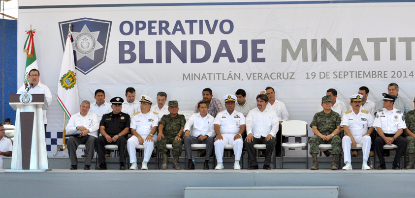 El mandatario explicó que inicia un despliegue del personal para inhibir la comisión de delitos mediante patrullajes permanentes en Minatitlán y municipios aledaños, en los que participarán todas las fuerzas armadas, además de las procuradurías General de la República (PGR) y General de Justicia del Estado de Veracruz (PGJ).