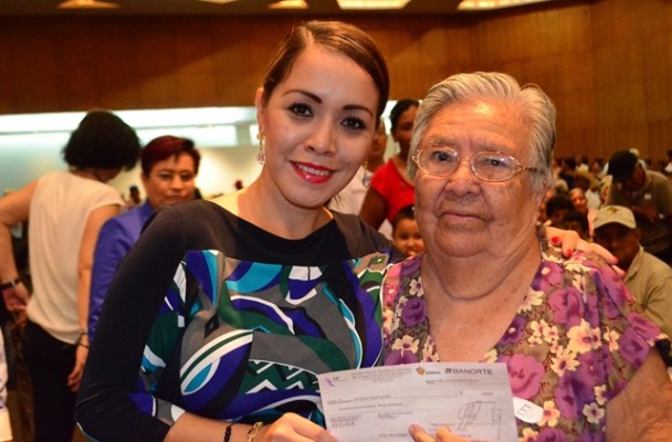 En representación de los casi mil abuelitos recibieron sus cheches los señores: Cecilio Hernández, Julián Gómez Sulvarán, Francisco Aladia Guillermín, Casildo García Santiago, Inés Espinoza Vasallo y Alfredo González García.