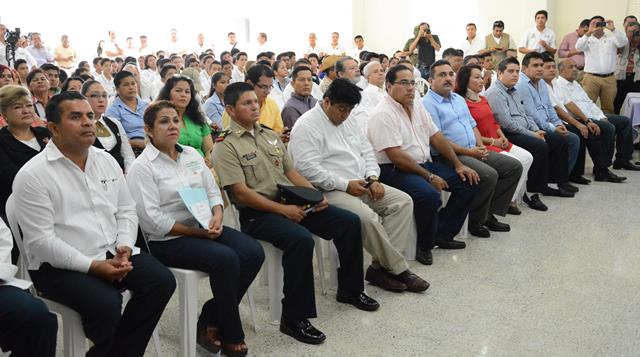 El jefe de la Jurisdicción Sanitaria XI Javier Reyes Muñoz; autoridades municipales, navales y militares y estudiantes del CBTIS 85.