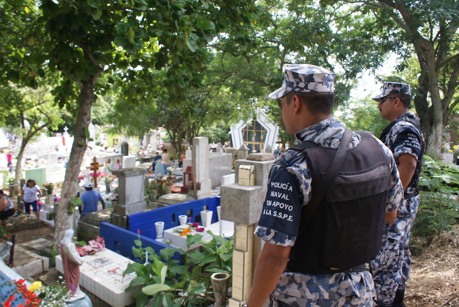 A través de recorridos dentro y fuera de los panteones los elementos navales y estatales se mantuvieron cerca de la población.