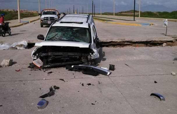 Las afectaciones por el pasado meteoro climatológico en el malecón costero que resultó destruido ocasionó ya un grave accidente vehicular