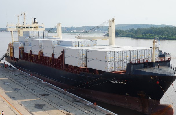 Coatzacoalcos.- Con el embarque de 14 contenedores refrigerados a bordo del B/M FALMOUTH, inicia este importante servicio por el Puerto de Coatzacoalcos.