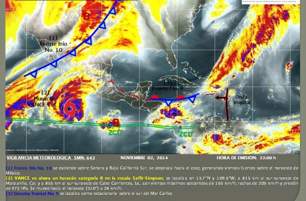 Por su parte, la masa de aire frío que se asocia con este Frente estaría ocasionando viento del Norte fuerte y oleaje elevado en la zona litoral veracruzana y un nuevo descenso de la temperatura diurna.
