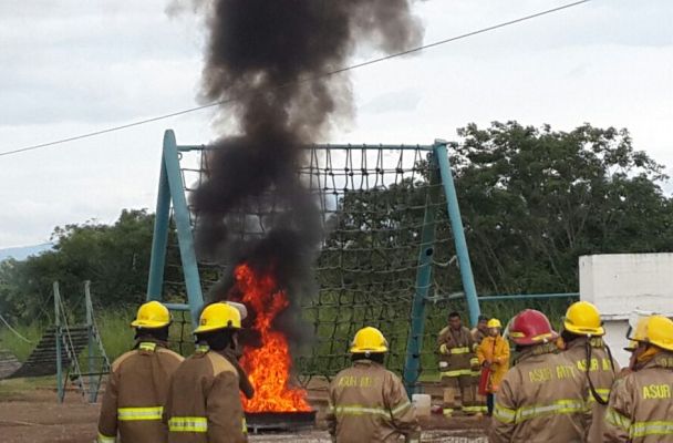 Fue en las instalaciones del Centro de respuesta a emergencias de incendios del Aeropuerto Internacional de Minatitlan, ASUR., donde participaron 35 alumnos de empresas afiliadas al IMSS y a los centros laborales del IMSS de la Delegación Regional Veracruz Sur, tanto de unidades administrativas como médicas.