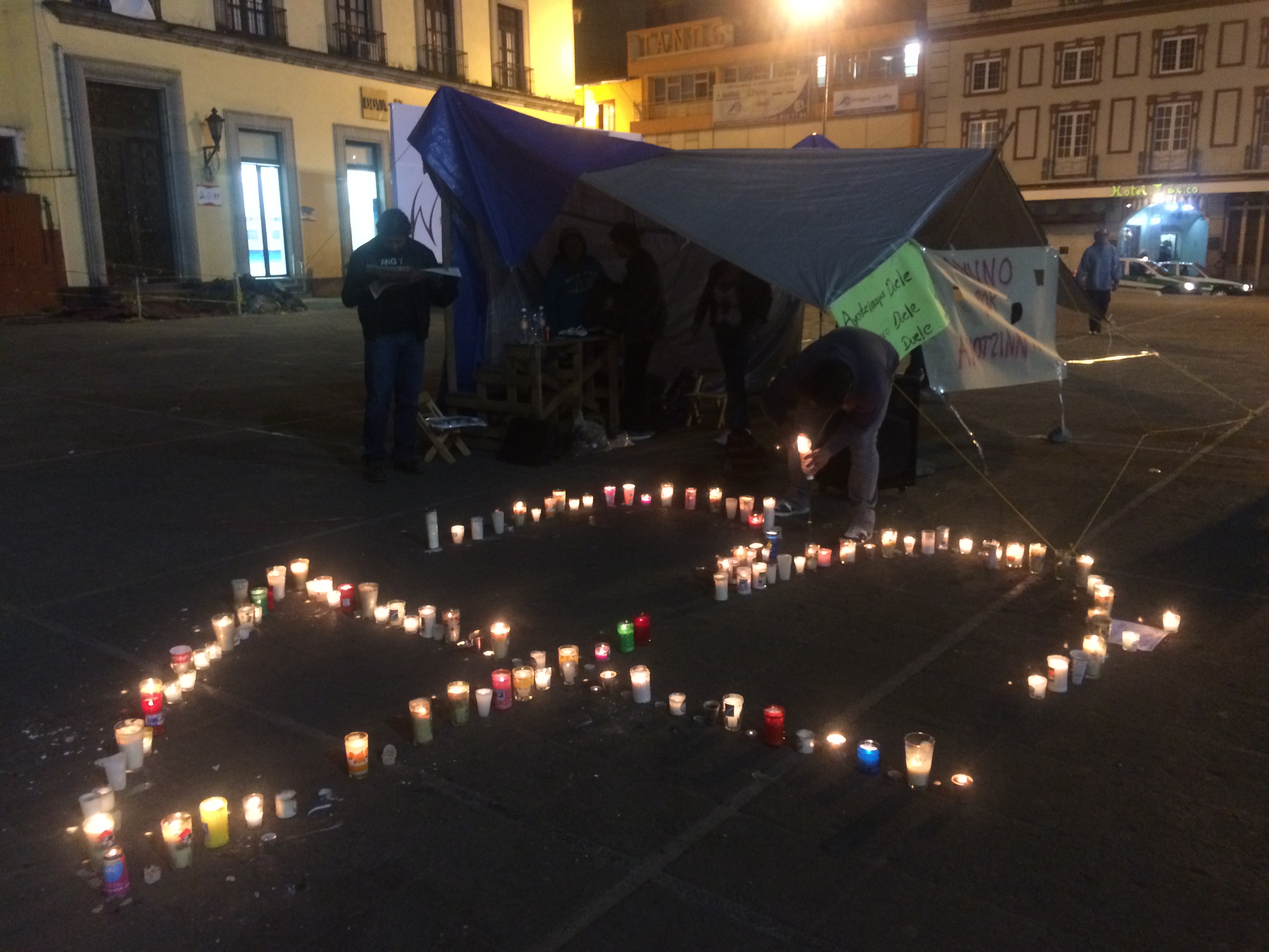 En Xalapa, en Plaza Lerdo continúa la manifestación de estudiantes ante la desaparición de 43 normalistas en Guerrero.