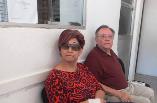 En los momentos de su detención, en la Procuraduría General de Justicia, Enrique Aguilar Urcelay, con su esposa.