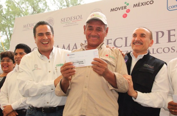 El alcalde Joaquín Caballero y el delegado SEDESOL, Marcelo Montiel, entregaron los recursos de apoyo.